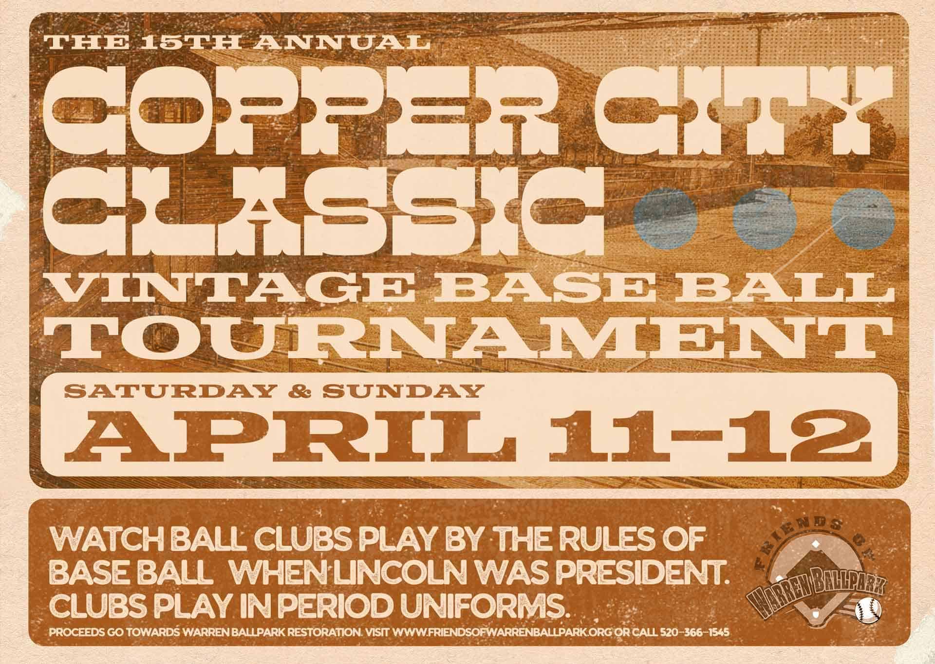 Vintage base ball returns to Bisbee’s historic Warren Ballpark April 11th and 12th. Teams from Bisbee, Tucson, Colorado, California and the Phoenix metro area take to the field to play in the 15th Copper City Classic Vintage Base Ball Tournament at Bisbee’s 117-year-old Warren Ballpark.